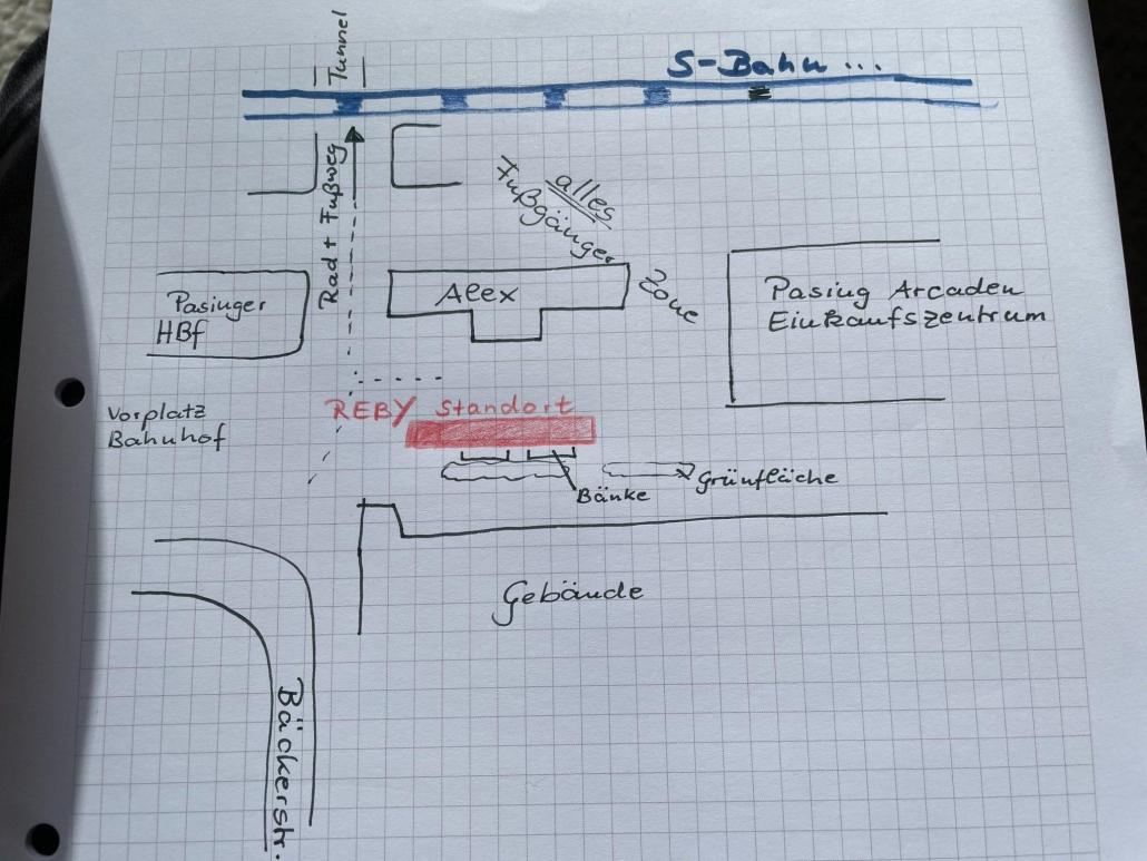 100 Meter westlich vom Südausgang Pasinger Bahnhof