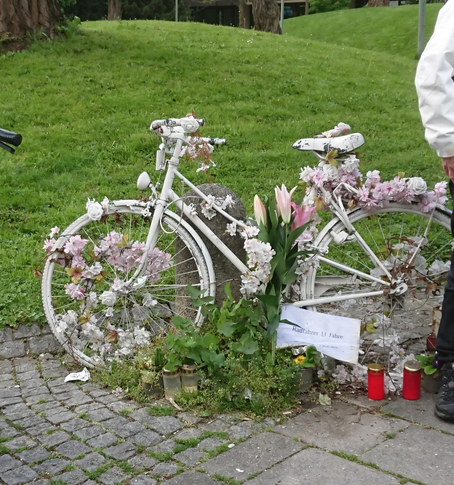 Jedes Jahr am 3. Mittwoch in Mai fahren wir alle weiß gekleidet und gedenken der im Straßenverkehr getöteten Radler*innen. An den weiß gestrichenen Rädern, den Ghostbikes, machen wir kurz Halt und bringen so unser Mitgefühl für die Opfer des Straßenverkehrs zum Ausdruck. Wir hoffen auf die rasche Umsetzung der Vision Zero Ziele. Kommt reichlich und bringt eure Freund*innen mit.