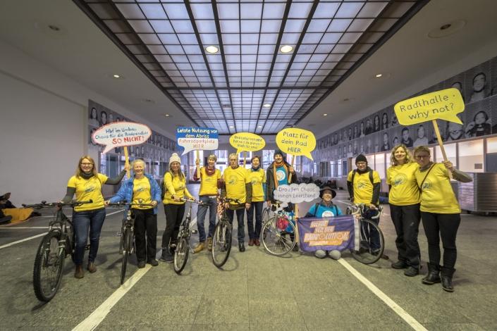 Radaktivist:innen protestieren am 07.12. mit einer Überraschungsaktion am Bahnhof