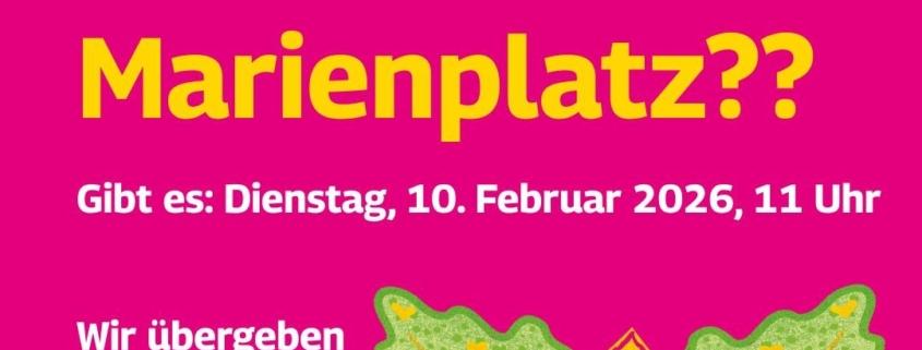 Mit dem Bündnis „Stadt für Alle“ übergeben wir am Dienstag, 10.02., um 11 Uhr unsere Forderungen zur Kommunalwahl 2026 für eine soziale, klimagerechte und lebenswerte Stadt an die Stadtpolitik!