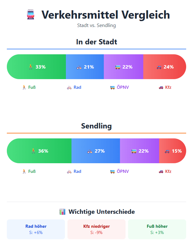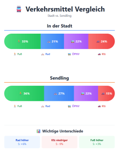 In Oktober 2025 hat die Stadt die Ergebnisse der Haushaltsbefragung „Mobilität in Städten“ aus 2023 veröffentlicht - jeder Bezirk hat eine eigene Grafik bekommen mit den Verkehrsmittelanteilen, auch Modal Split benannt. Fußverkehr und Radverkehr nehmen grundsätzlich überall in München zu!