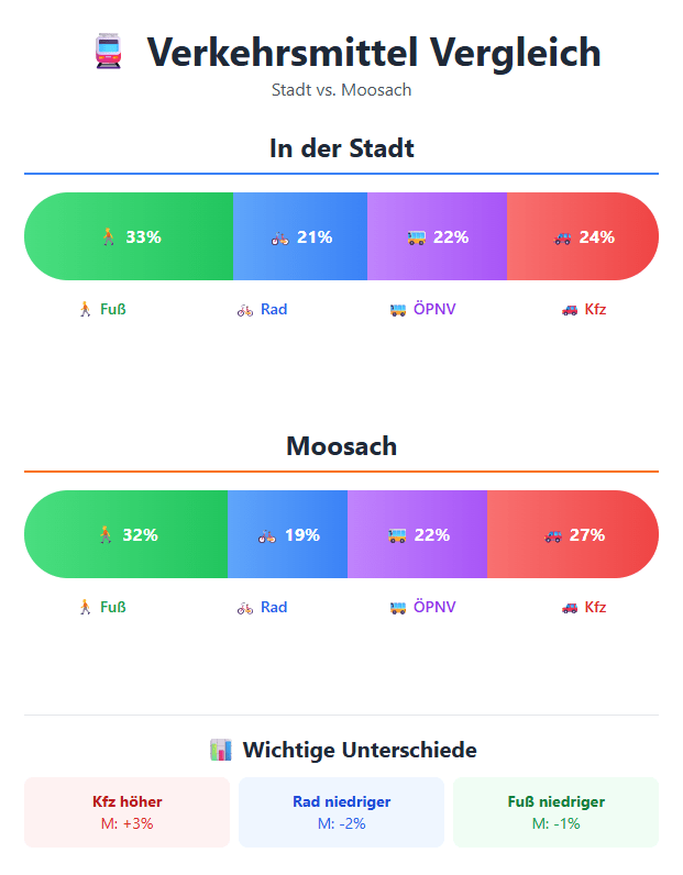 In Oktober 2025 hat die Stadt die Ergebnisse der Haushaltsbefragung „Mobilität in Städten“ aus 2023 veröffentlicht - jeder Bezirk hat eine eigene Grafik bekommen mit den Verkehrsmittelanteilen, auch Modal Split benannt.  Fußverkehr und Radverkehr nehmen grundsätzlich überall in München zu!