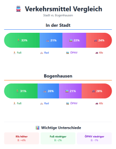 In Oktober 2025 hat die Stadt die Ergebnisse der Haushaltsbefragung „Mobilität in Städten“ aus 2023 veröffentlicht - jeder Bezirk hat eine eigene Grafik bekommen mit den Verkehrsmittelanteilen, auch Modal Split benannt.  Fußverkehr und Radverkehr nehmen grundsätzlich überall in München zu!