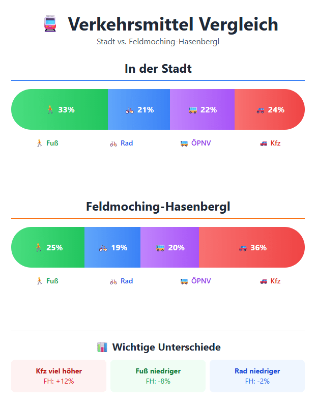 In Oktober 2025 hat die Stadt die Ergebnisse der Haushaltsbefragung „Mobilität in Städten“ aus 2023 veröffentlicht - jeder Bezirk hat eine eigene Grafik bekommen mit den Verkehrsmittelanteilen, auch Modal Split benannt. Fußverkehr und Radverkehr nehmen grundsätzlich überall in München zu!