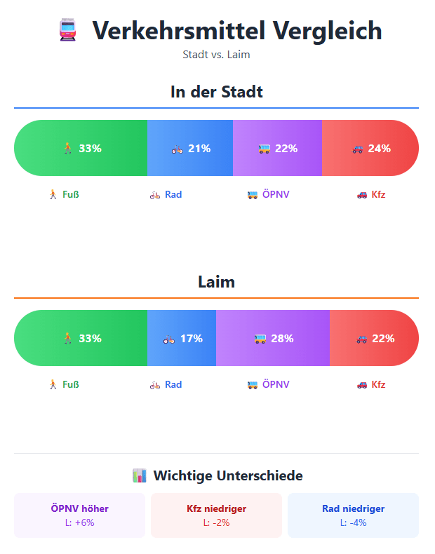 In Oktober 2025 hat die Stadt die Ergebnisse der Haushaltsbefragung „Mobilität in Städten“ aus 2023 veröffentlicht - jeder Bezirk hat eine eigene Grafik bekommen mit den Verkehrsmittelanteilen, auch Modal Split benannt. Fußverkehr und Radverkehr nehmen grundsätzlich überall in München zu!